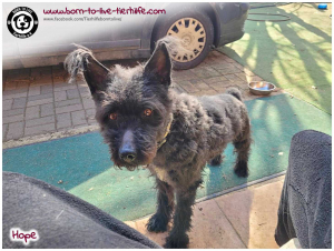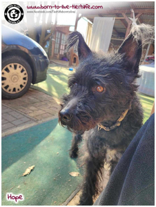 Die arme HOPE wurde im Mai 2023 von ihrem ehem. Besitzer zum Einschläfern in der Tierklinik zurück gelassen. Die Klinik sagte: „Nein!“, da es hierfür keinen Grund gab und kontaktierte unsere befreundete, ungarische Tierschützerin Ágnes Pompár, ob sie HOPE zu sich nehmen könnte. Ágnes zögerte nicht lang und nahm das verängstigte Tier zu sich auf Not-Pflegestelle.