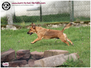 Wenn er Leckerli bekommt ist er sehr sanft. Loki liebt es ausgiebig zu spielen. Wenn er auf dem Feld ist springt er wie ein fröhlicher Hase herum.wenn er eine Auszeit braucht, macht er das einfach und legt sich auf seinen Platz oder jeden Teppich der in der Nähe liegt