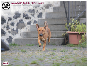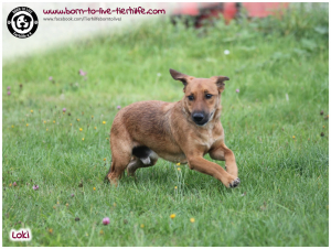 Loki wurde in Ungarn in einer Pappkarton als Welpe gefunden.